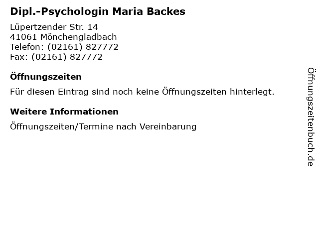 | Dipl.-Psychologin Maria Backes anrufen | |