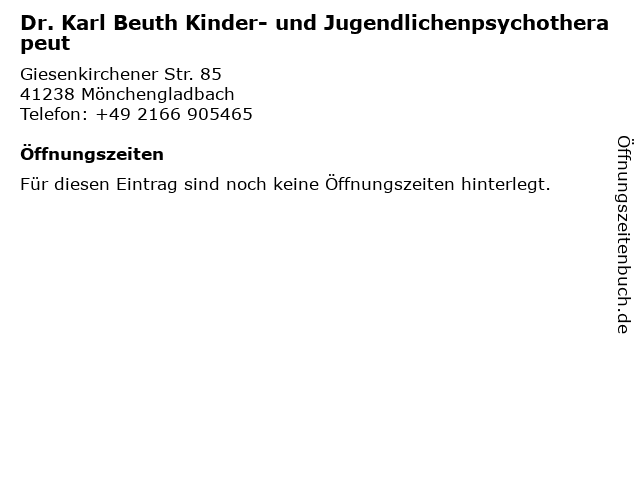 | Dr. Karl Beuth Kinder- und Jugendlichenpsychotherapeut anrufen | |