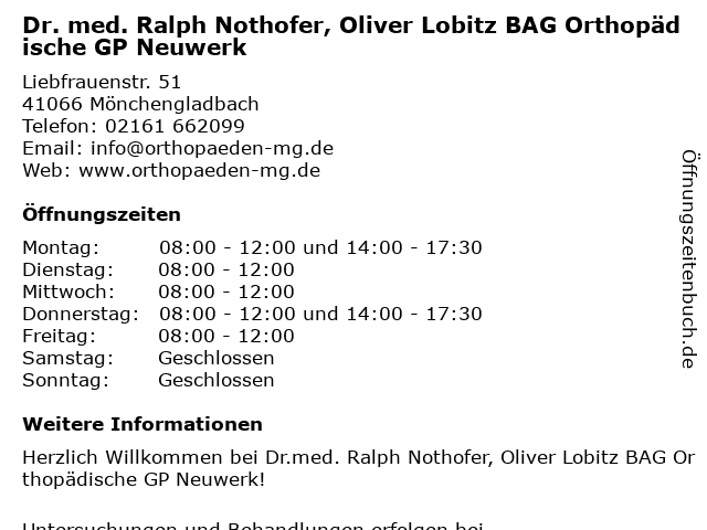 Branchen & Suchbegriffe zu Dr. med. Ralph Nothofer, Oliver Lobitz BAG Orthopädische GP Neuwerk:bag, dr., gp, lobitz, med., neuwerk, nothofer, oliver, orthopädische, ralph |