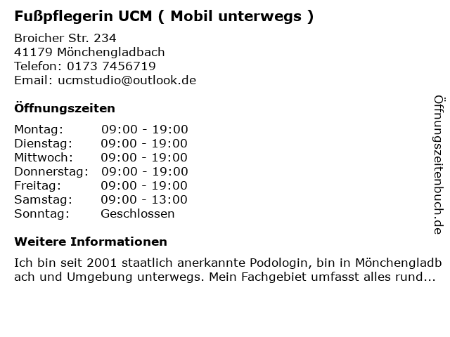 Branchen & Suchbegriffe zu Fußpflegerin UCM ( Mobil unterwegs ):fußpflegerin, mobil, ucm, unterwegs |