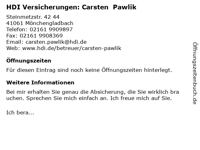 Öffnungszeiten HDI Versicherungen: Carsten Pawlik