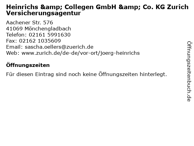 | Heinrichs & Collegen GmbH & Co. KG Zurich Versicherungsagentur anrufen | |