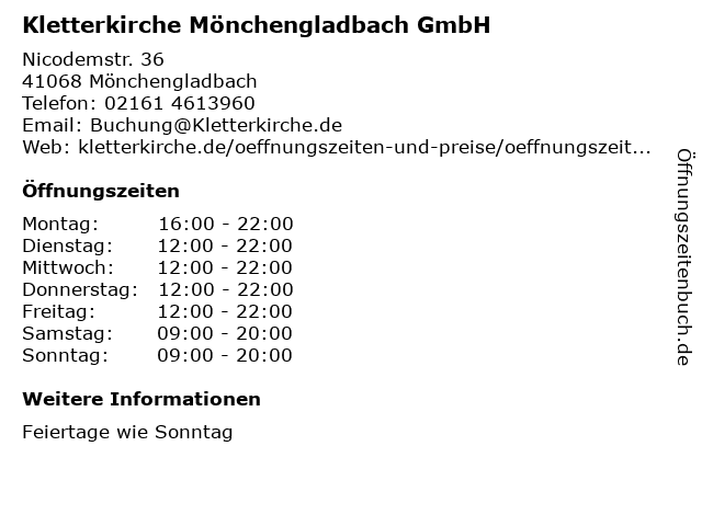 Branchen & Suchbegriffe zu Kletterkirche Mönchengladbach GmbH:bouldern, freizeit, kletterhalle, kletterkirche, klettern, sport |