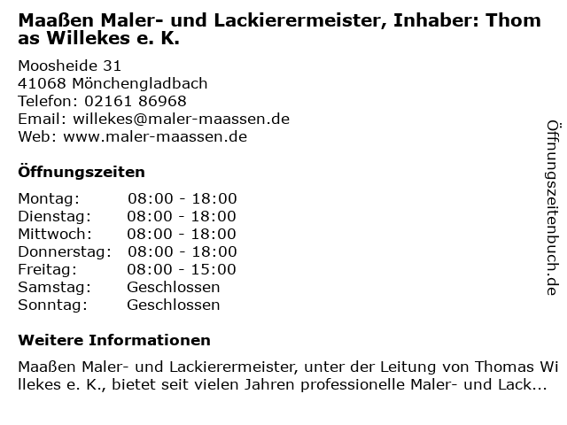 Branchen & Suchbegriffe zu Maaßen Maler- und Lackierermeister, Inhaber: Thomas Willekes e. K.:e., inhaber, k., lackierermeister, maaßen, maler, thomas, willekes |