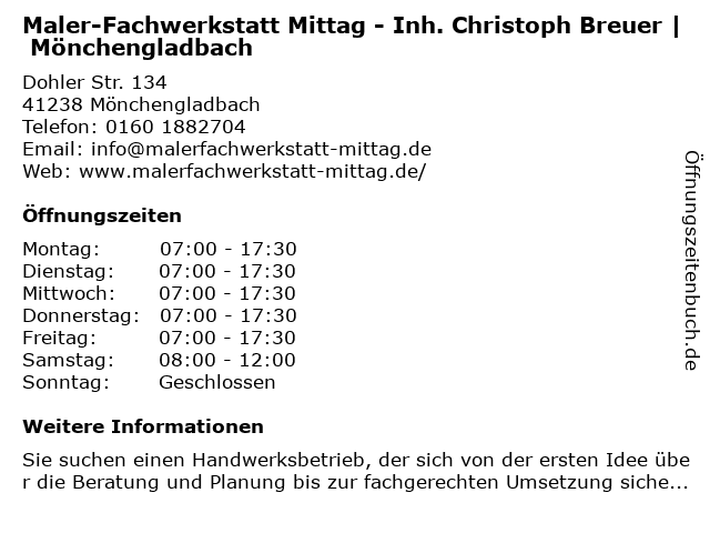 Branchen & Suchbegriffe zu Maler-Fachwerkstatt Mittag - Inh. Christoph Breuer | Mönchengladbach:breuer, christoph, fachwerkstatt, maler, mittag |