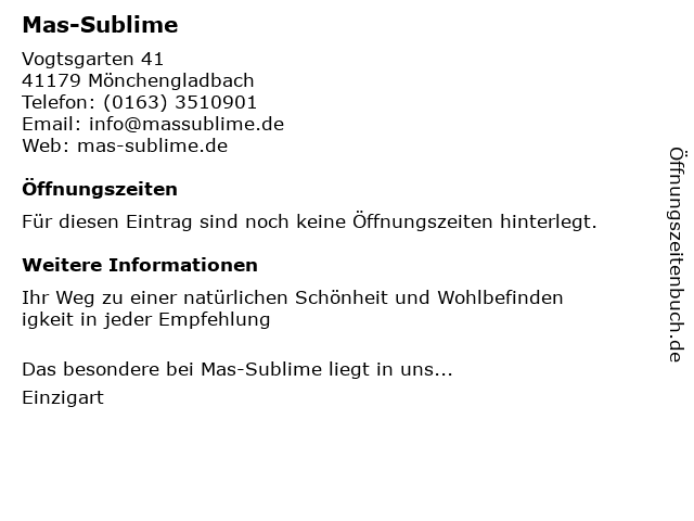 | Öffnungszeiten Mas-Sublime in Mönchengladbach anzeigen | |