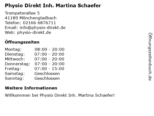 Branchen & Suchbegriffe zu Physio Direkt Inh. Martina Schaefer:direkt, martina, physio, schaefer |