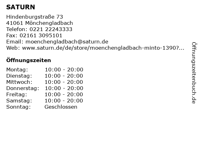 Öffnungszeiten SATURN in Mönchengladbach anzeigen | |