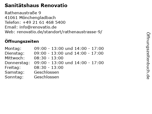 Öffnungszeiten Sanitätshaus Renovatio