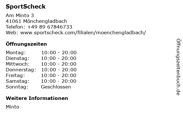 | Öffnungszeiten SportScheck in Mönchengladbach anzeigen | |