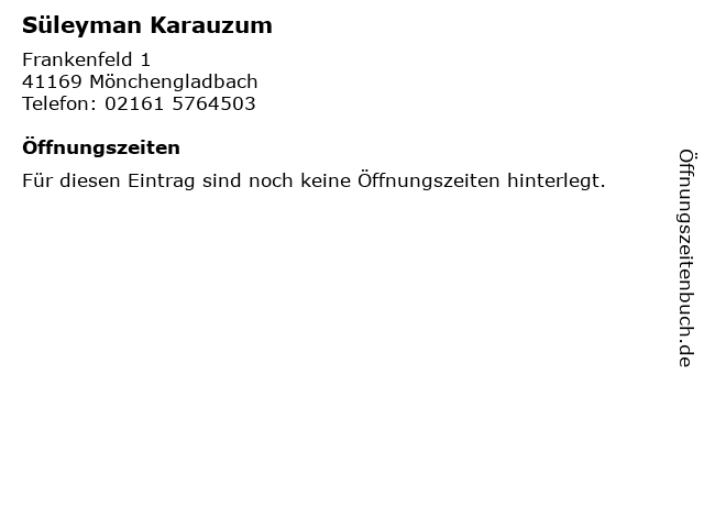 | Öffnungszeiten Süleyman Karauzum in Mönchengladbach anzeigen | |