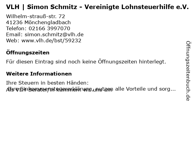 | VLH | Simon Schmitz - Vereinigte Lohnsteuerhilfe e.V. anrufen | |