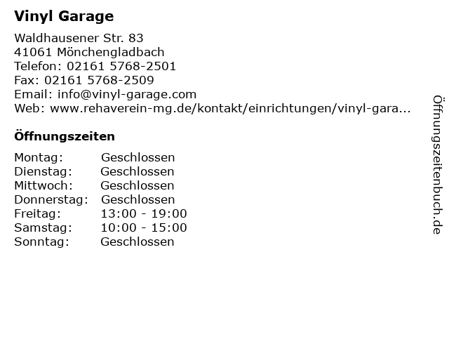 | Öffnungszeiten Vinyl Garage in Mönchengladbach anzeigen | |