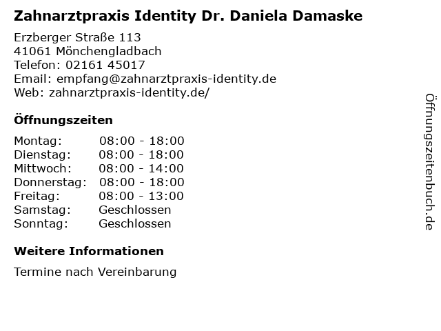 Branchen & Suchbegriffe zu Zahnarztpraxis Identity Dr. Daniela Damaske:damaske, daniela, dr., gesundheit, identity, kieferorthopädie, zahnarzt, zahnarztpraxis, zahnheilkunde |