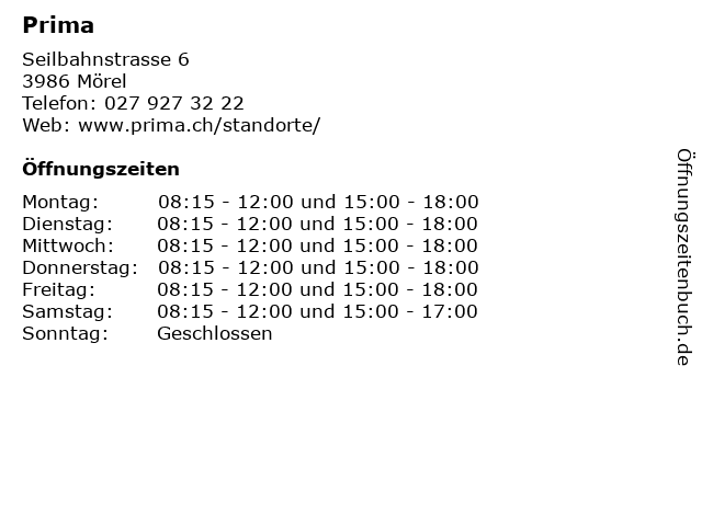 | Öffnungszeiten Prima in Mörel anzeigen | |