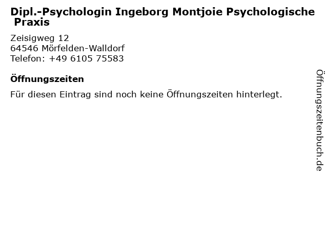 | Dipl.-Psychologin Ingeborg Montjoie Psychologische Praxis anrufen | |