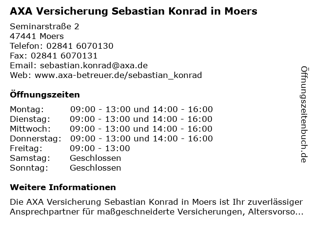 Branchen & Suchbegriffe zu AXA Versicherung Sebastian Konrad in Moers:altersvorsorge, autoversicherung, axa, berufshaftpflichtversicherung, gebäude- und hausratsversicherung, kfz-versicherung (motorrad), konrad, lebensversicherung, sebastian, unternehmen für versicherungsfachfragen, versicherung, zahnmedizinische versicherung |