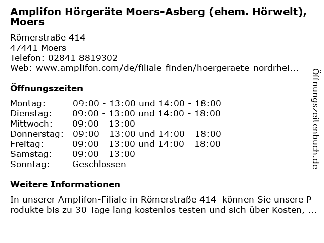 Branchen & Suchbegriffe zu Amplifon Hörgeräte Moers-Asberg (ehem. Hörwelt), Moers:amplifon, asberg, ehem., hörgeräte, hörwelt |