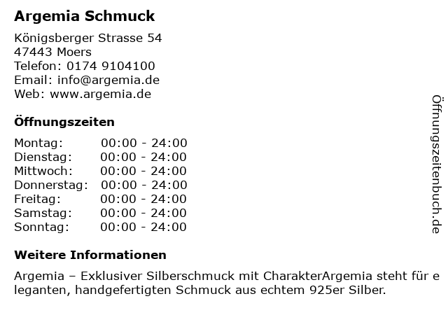 | Öffnungszeiten Argemia Schmuck in Moers anzeigen | |