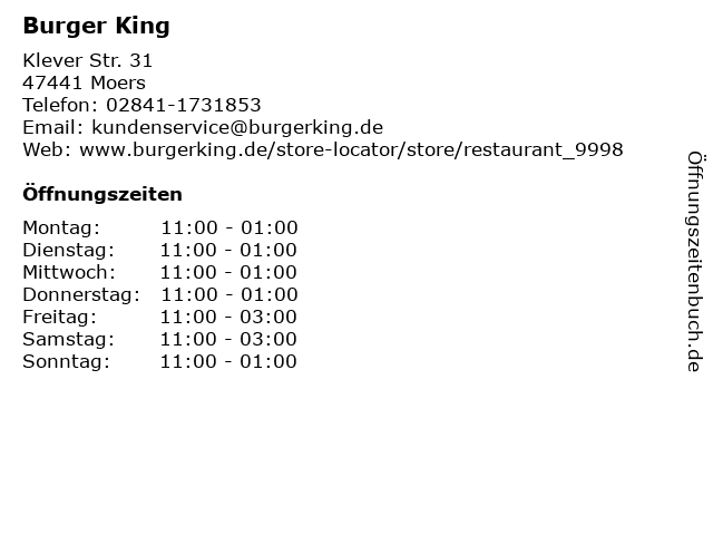 | Öffnungszeiten Burger King in Moers anzeigen | |