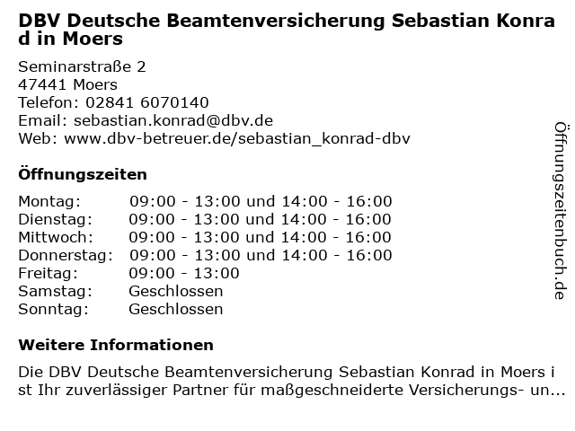 Branchen & Suchbegriffe zu DBV Deutsche Beamtenversicherung Sebastian Konrad in Moers:autoversicherung, beamtenversicherung, berufshaftpflichtversicherung, dbv, deutsche, gebäude- und hausratsversicherung, konrad, lebensversicherung, sebastian, unternehmen für versicherungsfachfragen, zahnmedizinische versicherung |