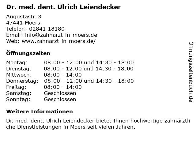 Branchen & Suchbegriffe zu Dr. med. dent. Ulrich Leiendecker:dent., dr., leiendecker, med., parodontologie für zahnimplantate, ulrich, zahnersatz, zahnprothesen, zahntechniker |
