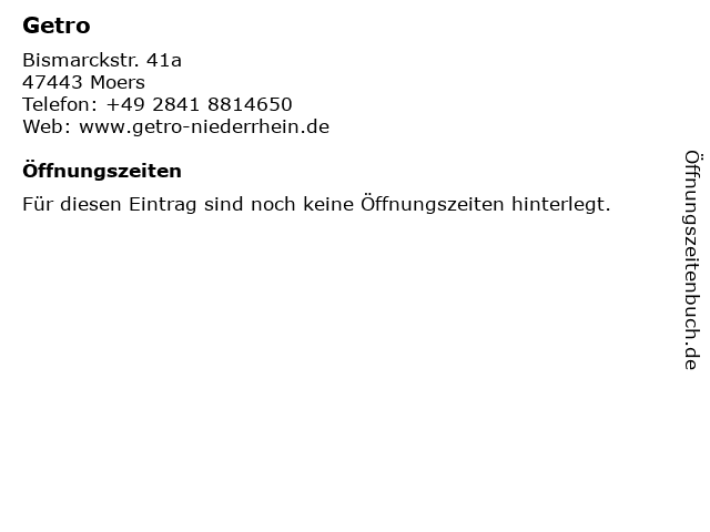 | Öffnungszeiten Getro in Moers anzeigen | |