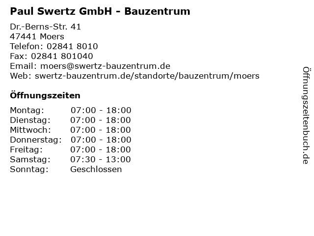 | Öffnungszeiten Paul Swertz GmbH - Bauzentrum in Moers anzeigen | |