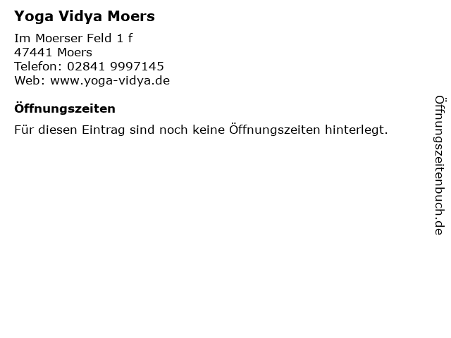 | Öffnungszeiten Yoga Vidya Moers in Moers anzeigen | |