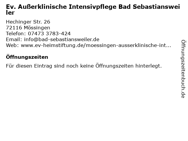 | Ev. Außerklinische Intensivpflege Bad Sebastiansweiler anrufen | |