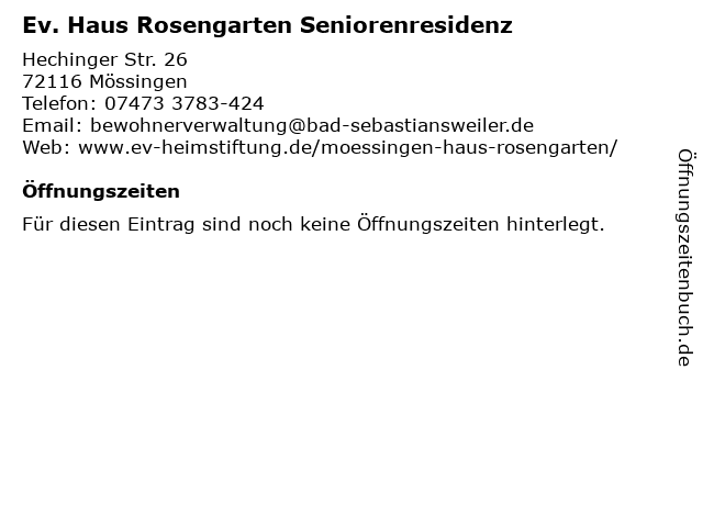 | Ev. Haus Rosengarten Seniorenresidenz anrufen | |