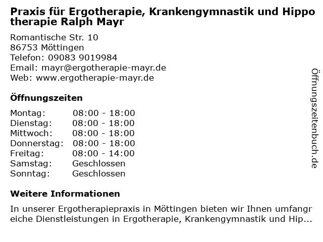 Branchen & Suchbegriffe zu Praxis für Ergotherapie, Krankengymnastik und Hippotherapie Ralph Mayr:ergotherapie, hippotherapie, krankengymnastik, mayr, praxis, ralph |