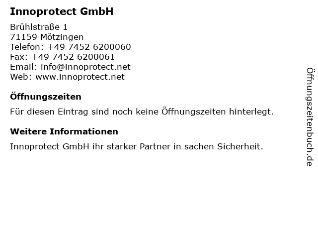 | Öffnungszeiten Innoprotect GmbH in Mötzingen anzeigen | |