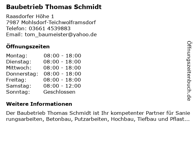 Branchen & Suchbegriffe zu Baubetrieb Thomas Schmidt:baubetrieb, schmidt, thomas |