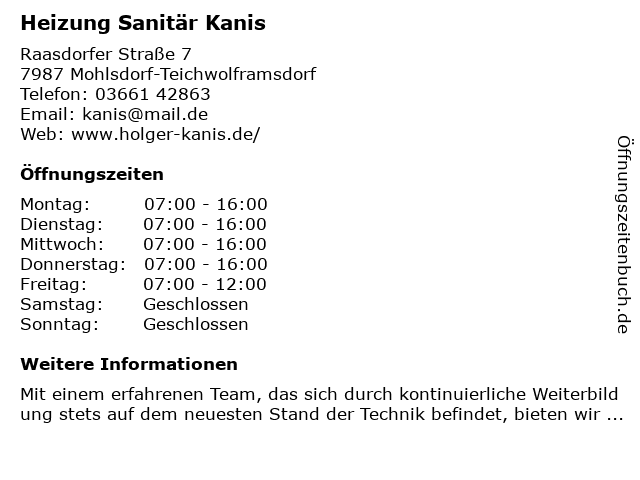 | Freitag | 07:00-12:00 |