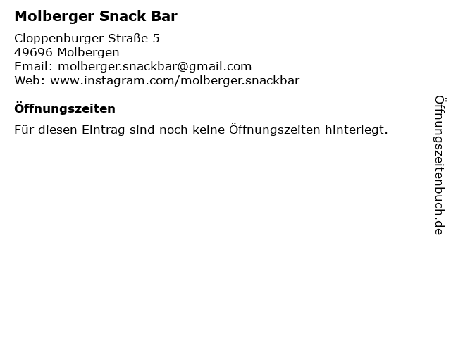 | Öffnungszeiten Molberger Snack Bar in Molbergen anzeigen | |