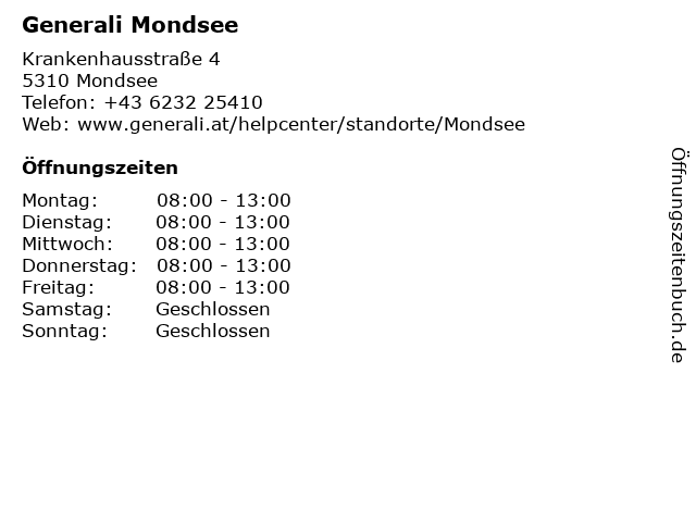 Öffnungszeiten Generali Mondsee in Mondsee anzeigen | |