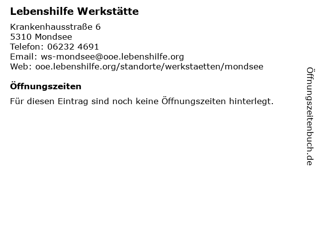 | Öffnungszeiten Lebenshilfe Werkstätte in Mondsee anzeigen | |