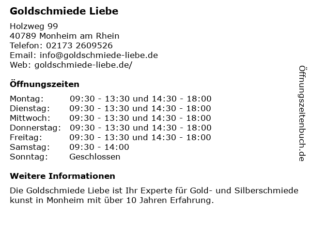 | Öffnungszeiten Goldschmiede Liebe in Monheim am Rhein anzeigen | |