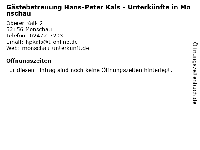 | Gästebetreuung Hans-Peter Kals - Unterkünfte in Monschau anrufen | |