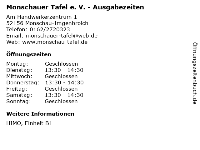 Branchen & Suchbegriffe zu Monschauer Tafel e. V. - Ausgabezeiten:arm, ausgabezeiten, e., essen, lebensmittel, monschauer, spende, tafel, v. |