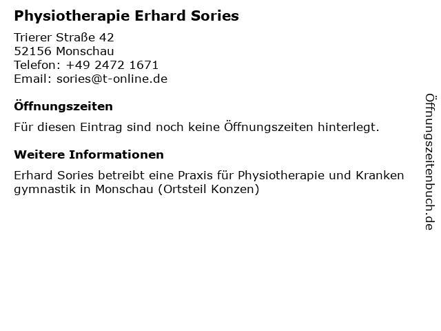 Branchen & Suchbegriffe zu Physiotherapie Erhard Sories:bobath- und pnf-therapie, erhard, krankengymnastik, massage, physiotherapie, sories |