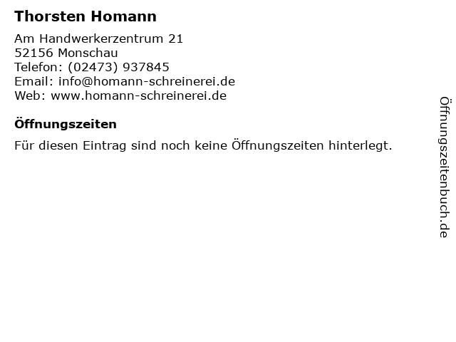 | Öffnungszeiten Thorsten Homann in Monschau anzeigen | |