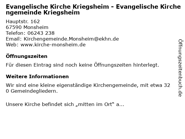 Branchen & Suchbegriffe zu Evangelische Kirche Kriegsheim - Evangelische Kirchengemeinde Kriegsheim:evangelische, kirche, kirchengemeinde, kriegsheim |