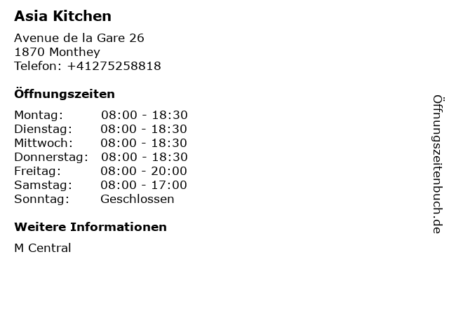 Öffnungszeiten Asia Kitchen in Monthey anzeigen | |