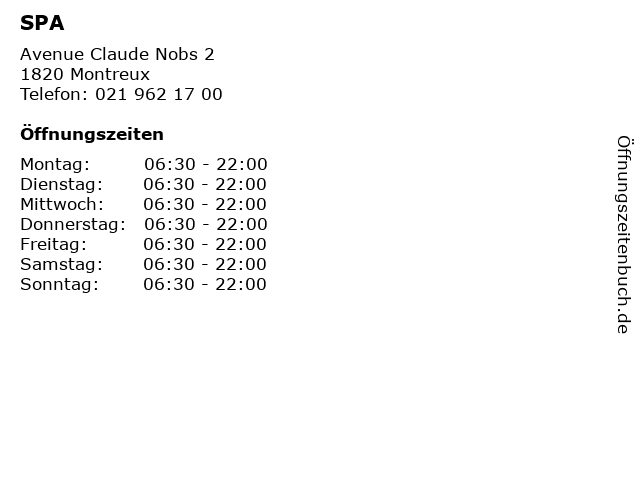 | Öffnungszeiten SPA in Montreux anzeigen | |