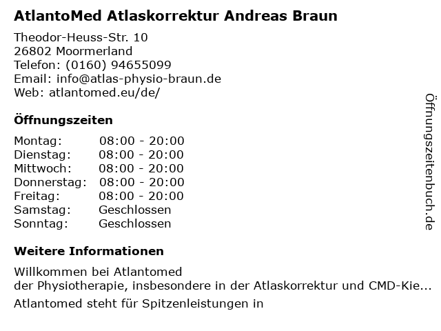 Branchen & Suchbegriffe zu AtlantoMed Atlaskorrektur Andreas Braun:andreas, atlantomed, atlas-axis-korrektur, atlaskorrektur, atlaskorrekturen, beckenschiefstand-behandlung, behandlung von schwindel, behandlung von schwindelbeschwerden, braun, cmd-kieferbehandlung, hilfe bei migräne, kopfschmerzbehandlung, krankengymnastik, lymphdrainage, manuelle therapie (mt) |