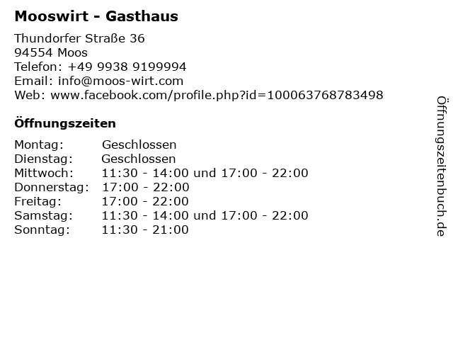 | Öffnungszeiten Mooswirt - Gasthaus in Moos anzeigen | |