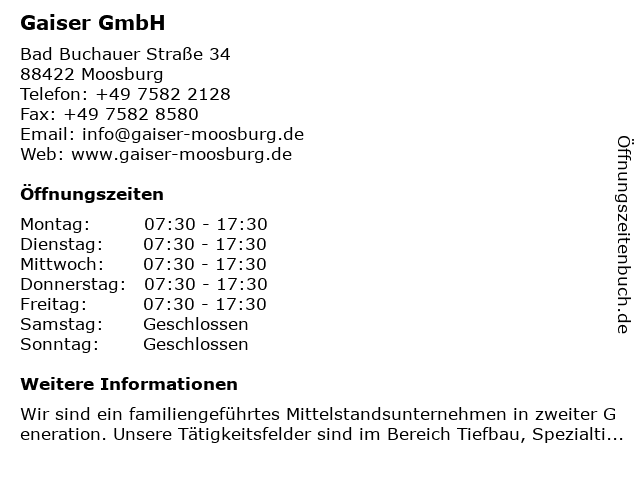 | Öffnungszeiten Gaiser GmbH in Moosburg anzeigen | |