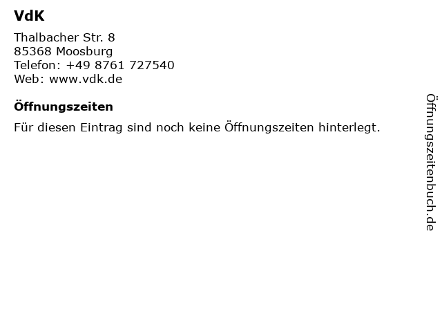 | Öffnungszeiten VdK in Moosburg anzeigen | |